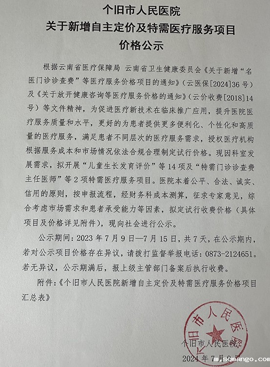 【价格公示】关于新增自主定价及特需医疗服务项目价格公示