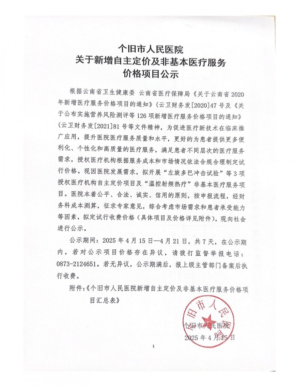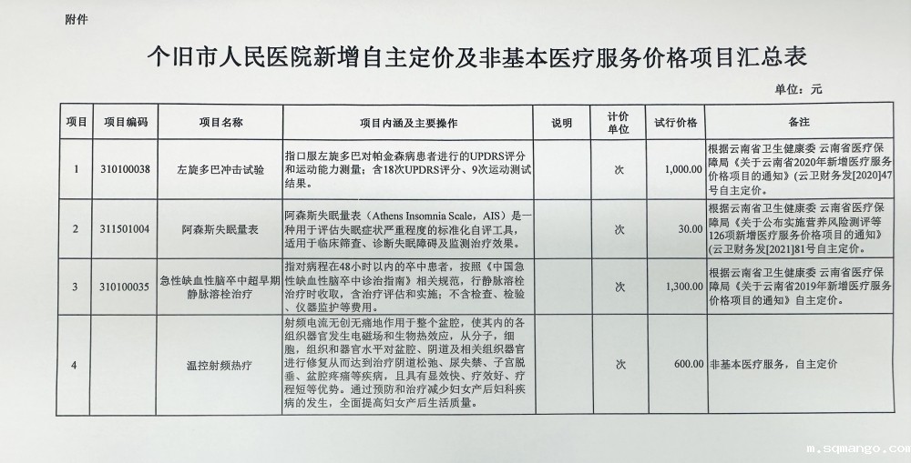 【公示】关于新增自主定价及非基本医疗服务价格项目的公示