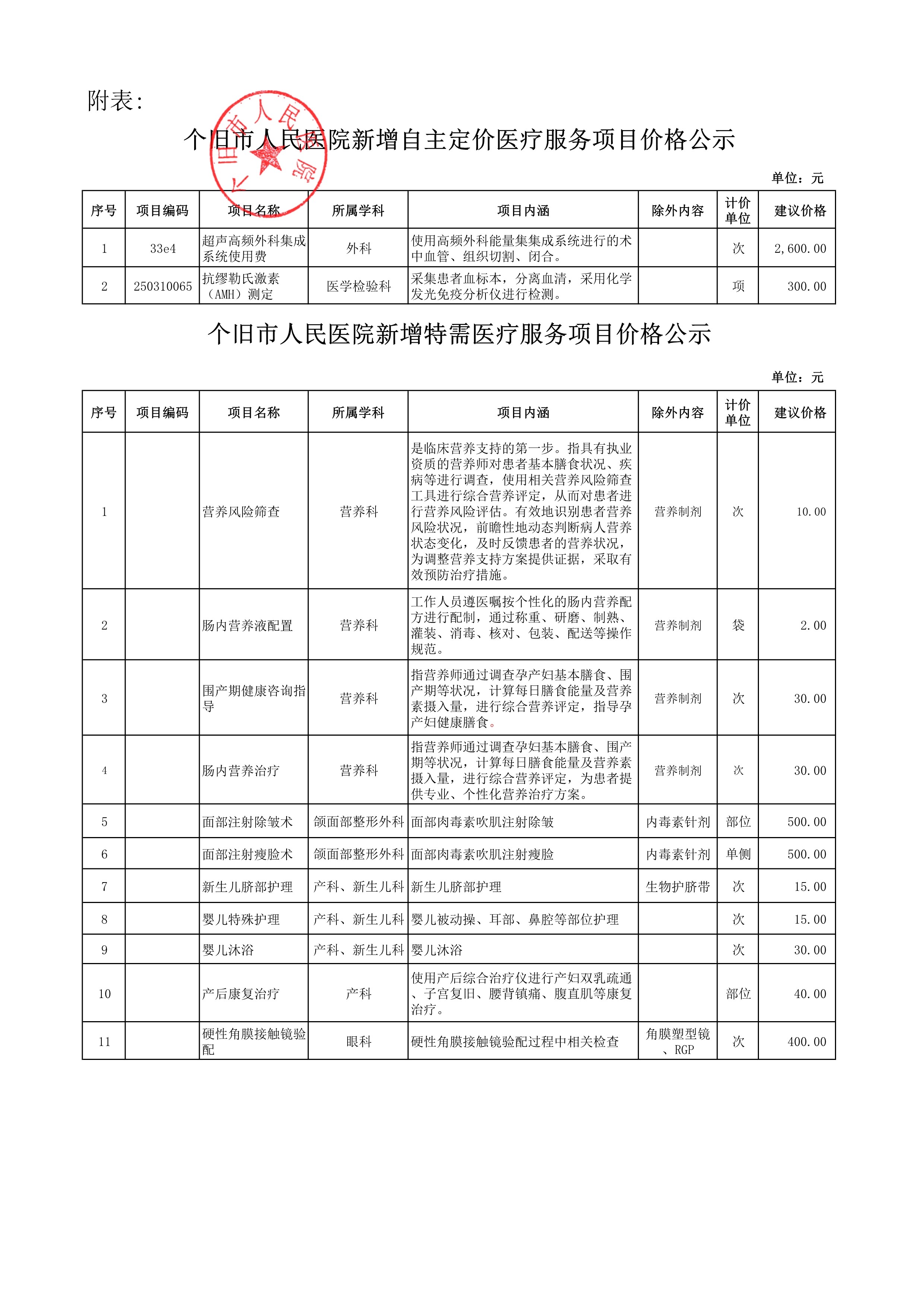 关于新增医疗服务项目价格公示