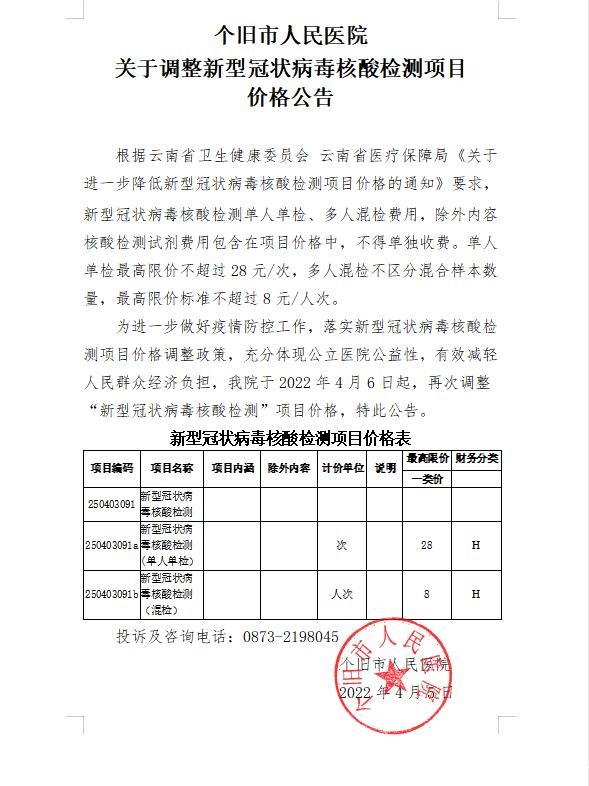 【公告】18luck国际 关于调整新型冠状病毒核酸检测项目价格公告