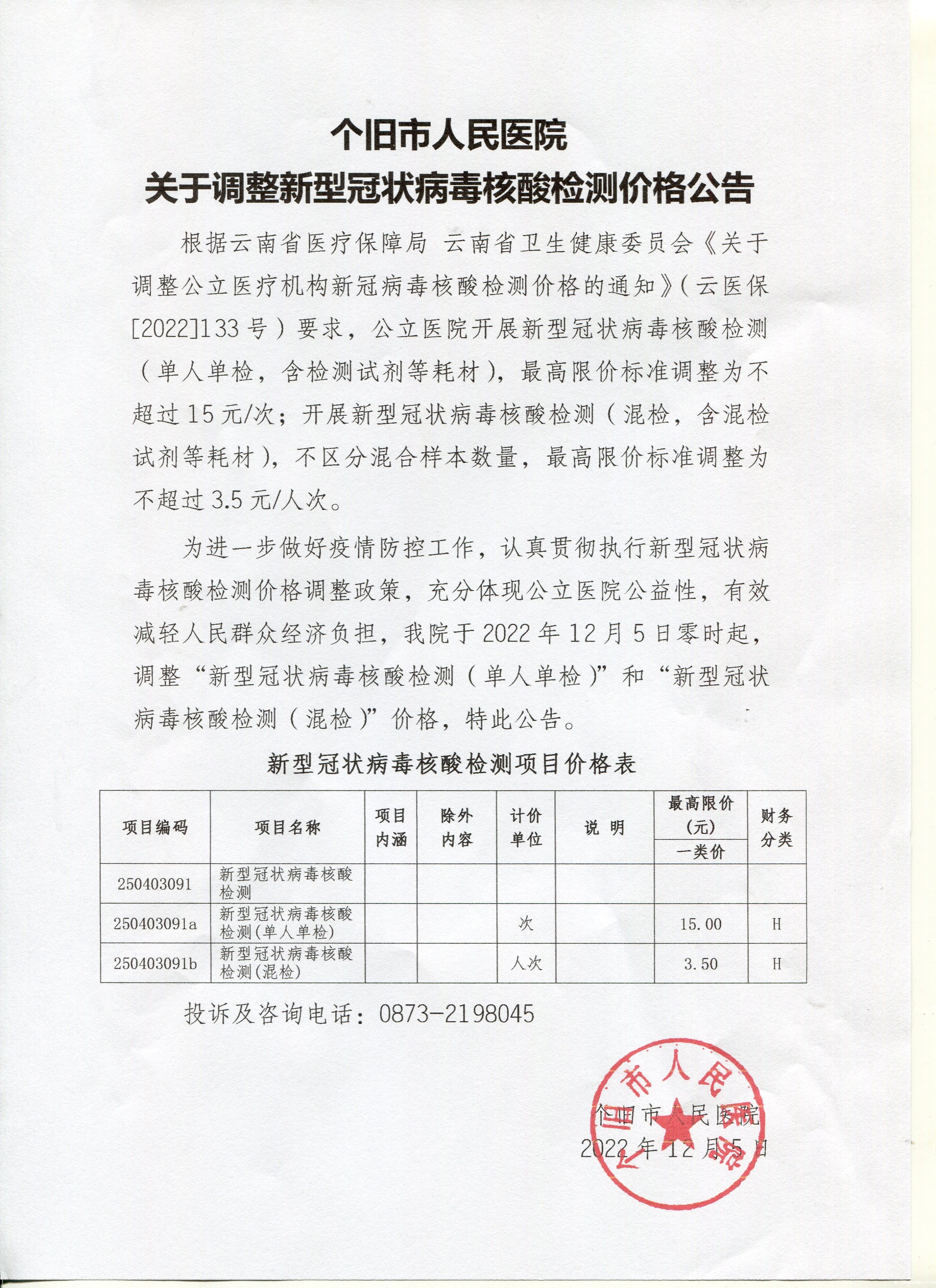 【价格公告】18luck国际关于调整新型冠状病毒核酸检测价格公告