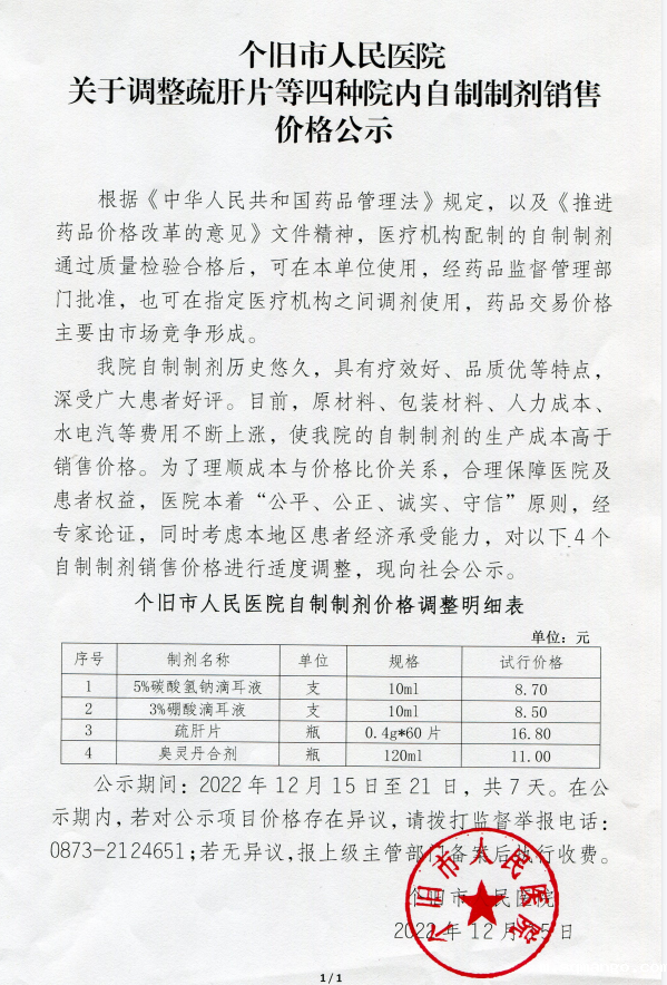 18luck国际 关于调整疏肝片等四种院内自制制剂销售价格公示