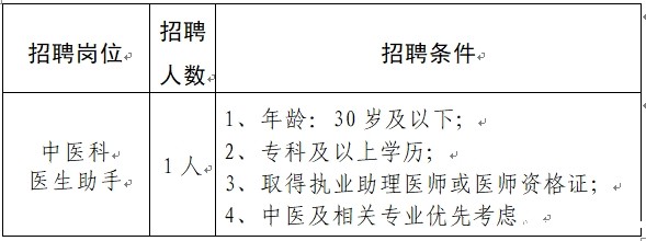 根据医院业务发展需求,我院中医科需招聘劳务派遣工作人员1名,具体招聘条件如下: